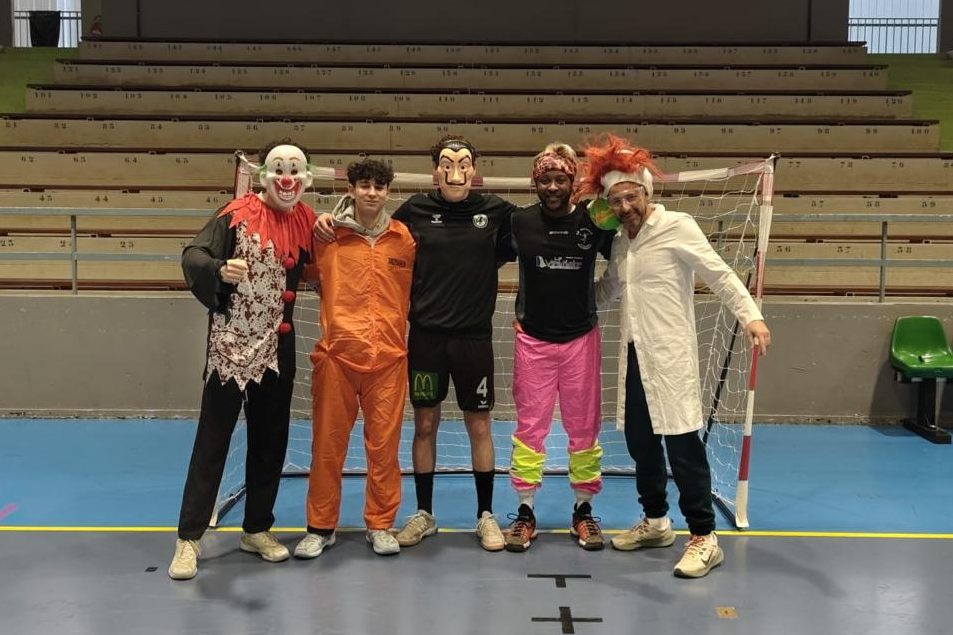 Le dimanche matin, retour au gymnase pour un tournoi de hand à 4 … déguisé ! L’occasion pour toutes les générations de s’illustrer avec audace : kung-fu, roucoulettes, chabs ou ce que d’autres appellent une “Palhares” ont régalé l’assistance, avant un bref passage au format classique à 7 joueurs.