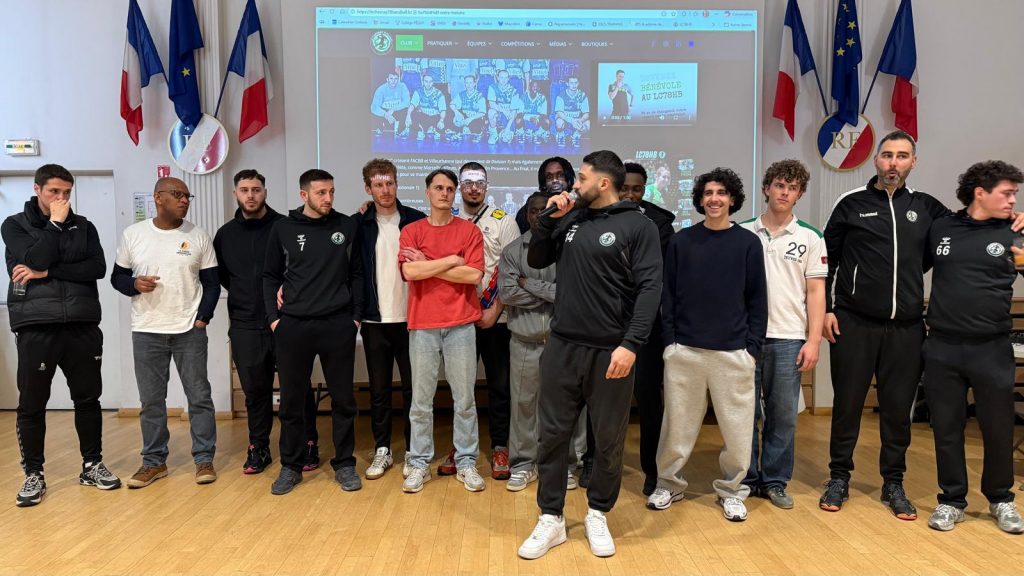L’après-midi a atteint son paroxysme avec l’arrivée de l’équipe première, découvrant sur le parvis la nouvelle voiture Toyota, partenaire aux couleurs du club. À 16h00, l’ambiance était électrique : une salle comble, comme jamais vue auparavant, pour pousser les Verts face à Villemomble (actuel 2ème au classement).